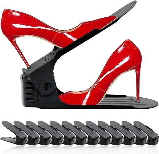 Elegancki, wytrzymały i oszczędzający miejsce. Ten składany, dwuwarstwowy stojak na buty z łatwością dopasowuje się do butów o różnej wysokości. Wykonany w 100% z nowego plastiku, jest trwały, odłączany i idealny do utrzymania porządku w obuwiu w nowoczesnych domach.
