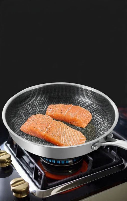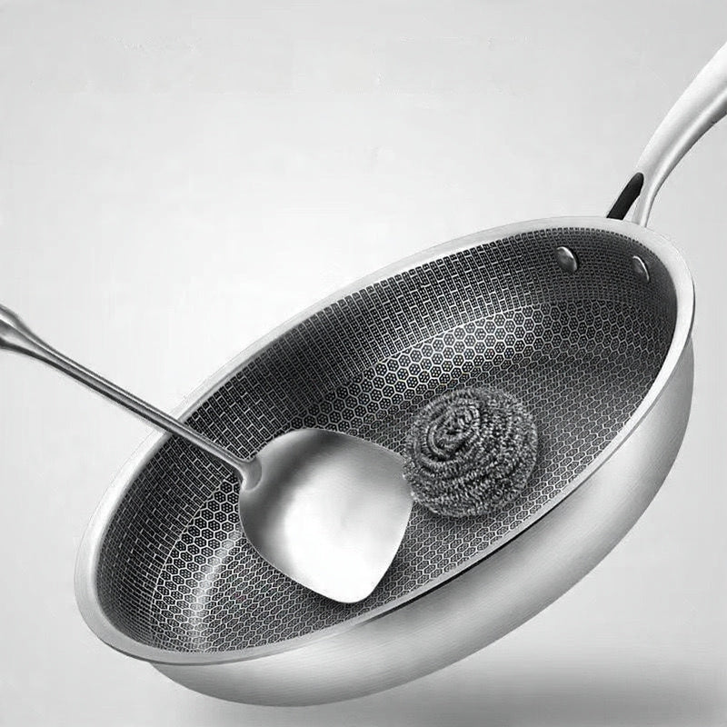 Zaprojektowana z myślą o trwałości i bezpieczeństwie codziennego gotowania, ta patelnia ze stali nierdzewnej o strukturze plastra miodu zapewnia solidną powłokę zapobiegającą przywieraniu bez użycia powłok chemicznych. Jej odporna na zarysowania powierzchnia, równomierne nagrzewanie i możliwość używania na wszystkich kuchenkach sprawiają, że jest to niezawodny wybór do nowoczesnych, wydajnych kuchni.