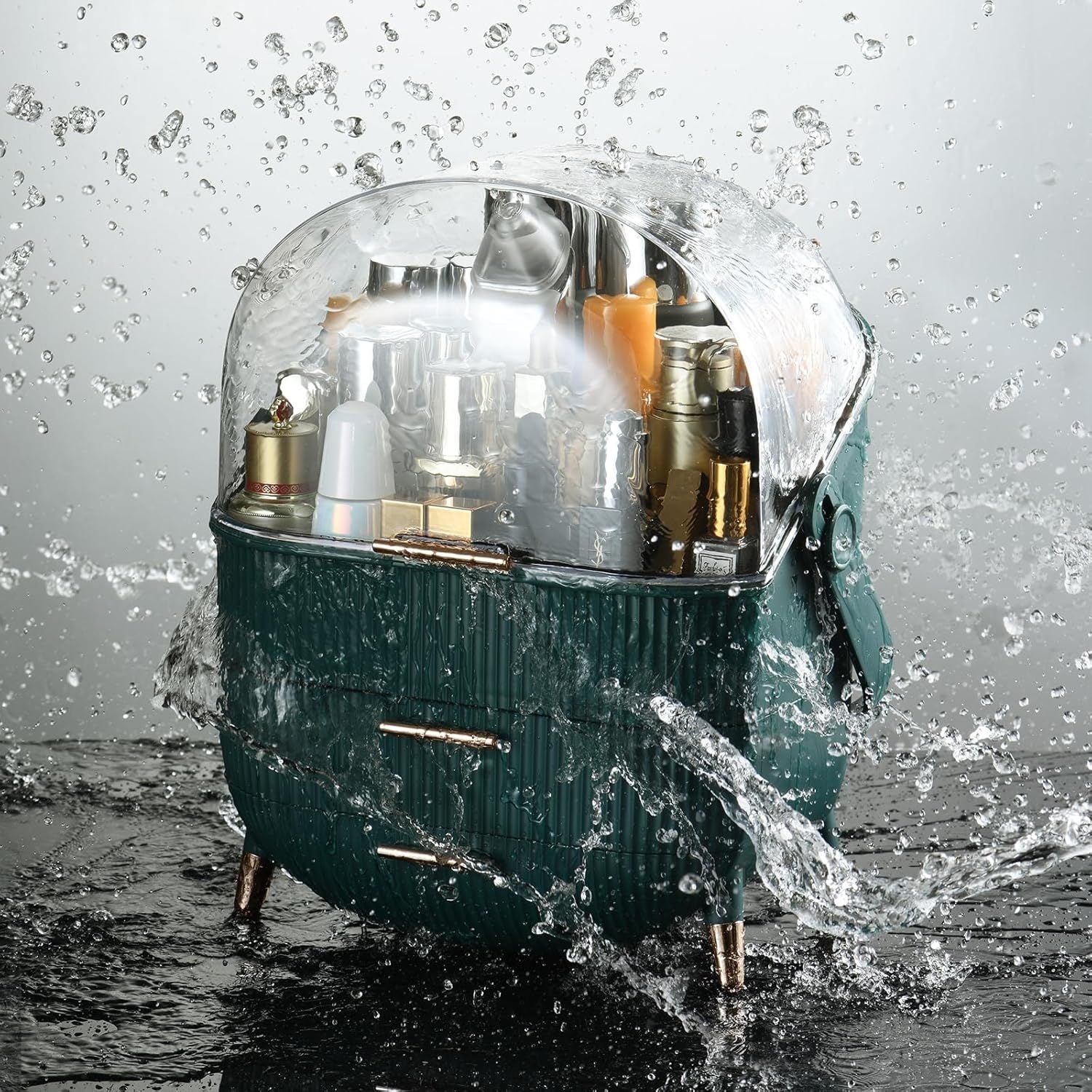 Keep your vanity neat and organized with this elegant makeup and skincare organizer. The clear dustproof lid protects your bottles while keeping everything visible, and the roomy drawers store smaller items without clutter. Its nonslip base stays steady even on wet counters, and the built-in handle lets you move it anywhere with ease. Perfect for both bedroom and bathroom use.